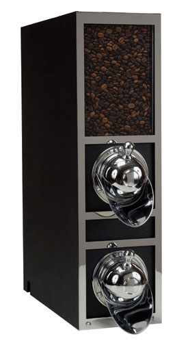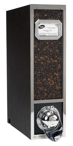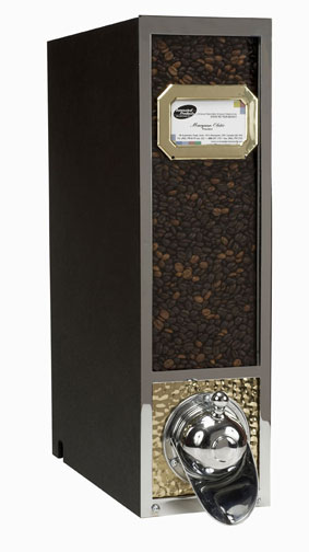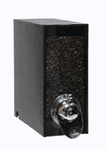 plastic body/metal front w/hammered face plate. Holds approximately 14lbs. of coffee.